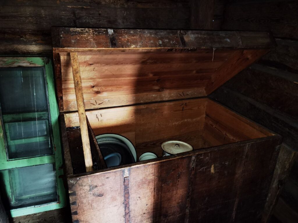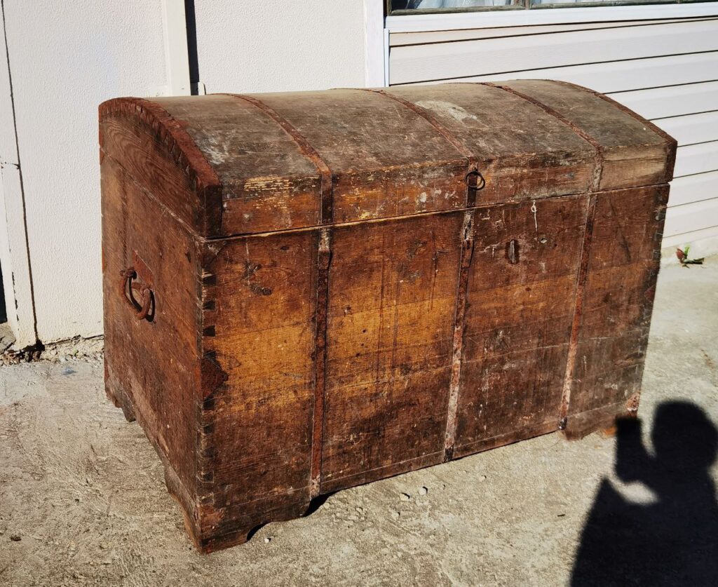 Весь 2022 год ушел на расчистку участков от леса (!), а домов – от векового хлама. Среди старых вещей попадались и настоящие сокровища. Например, вот этот чудесный куфар!